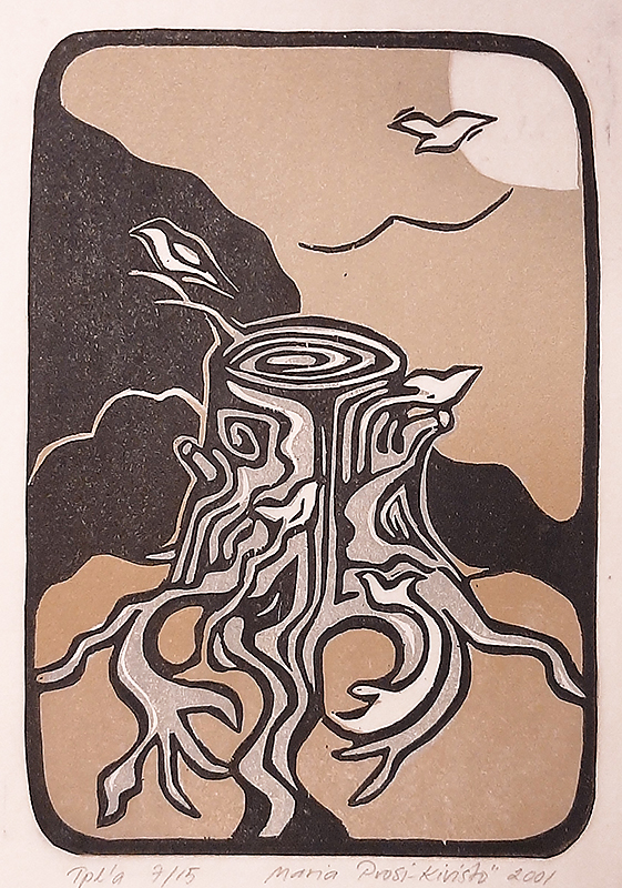 Unelmilla on siivet, puupiirros