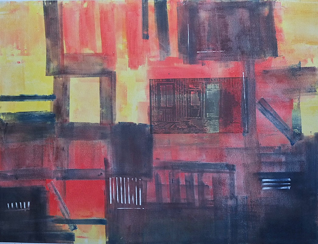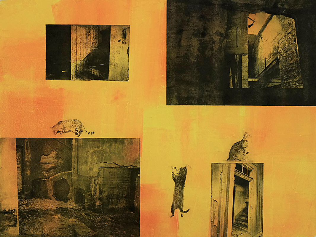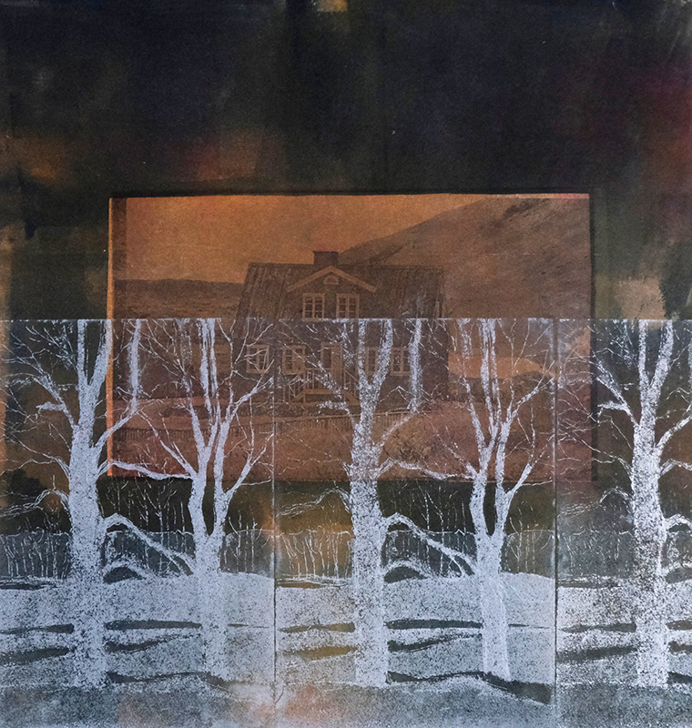 Yfirgefig hus, fotogravyyri, etsaus, akvatinta
